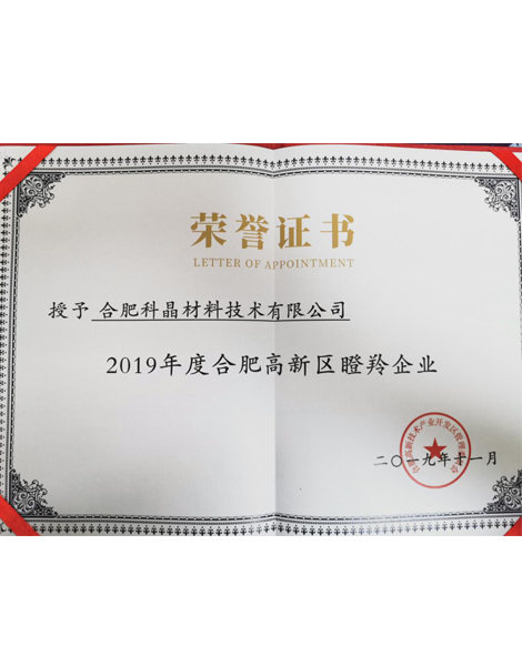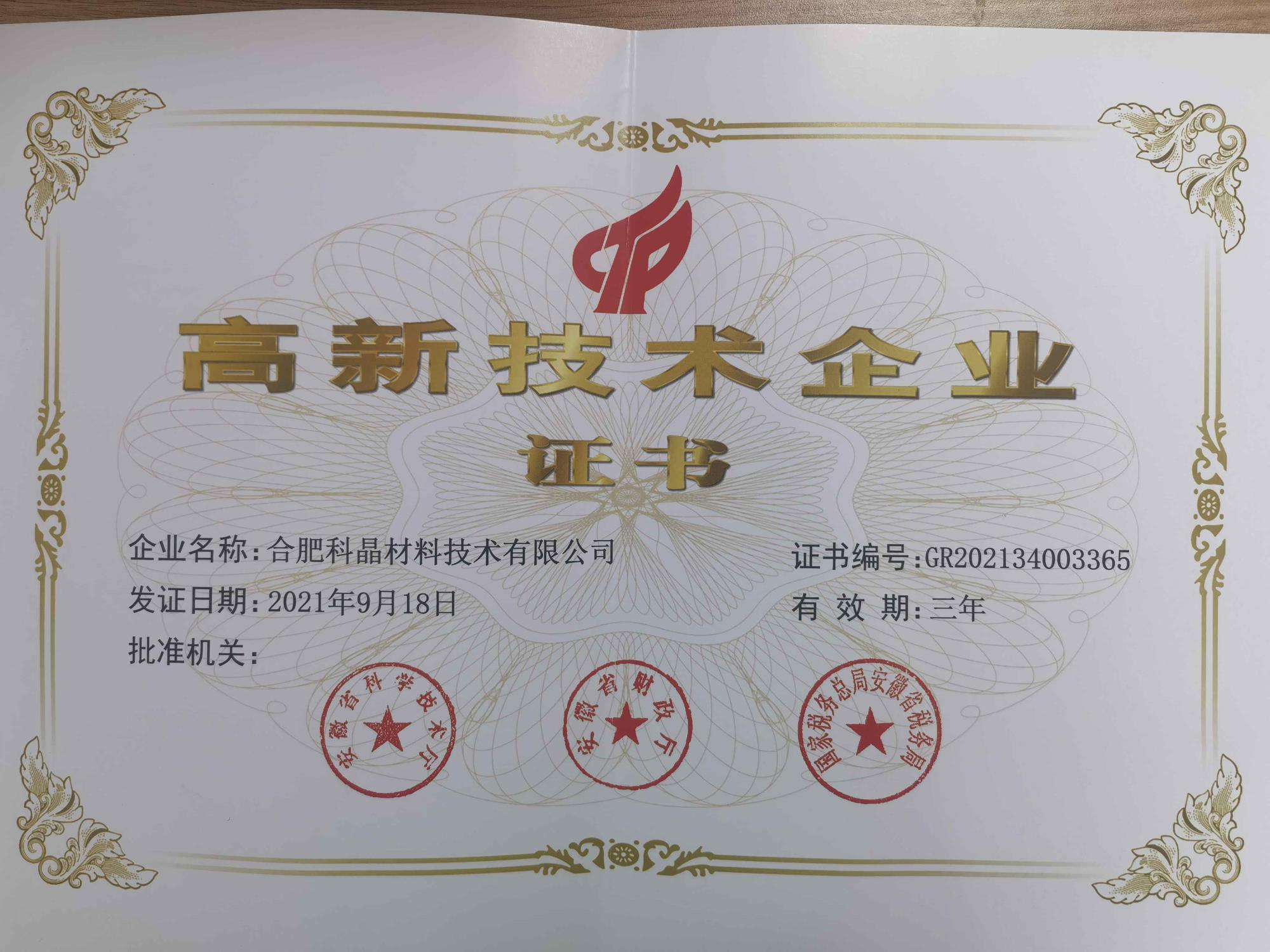 公司材料實(shí)驗(yàn)室被合肥市科技局認(rèn)定為“合肥市光電晶體材料裝備技術(shù)工程研究中心”