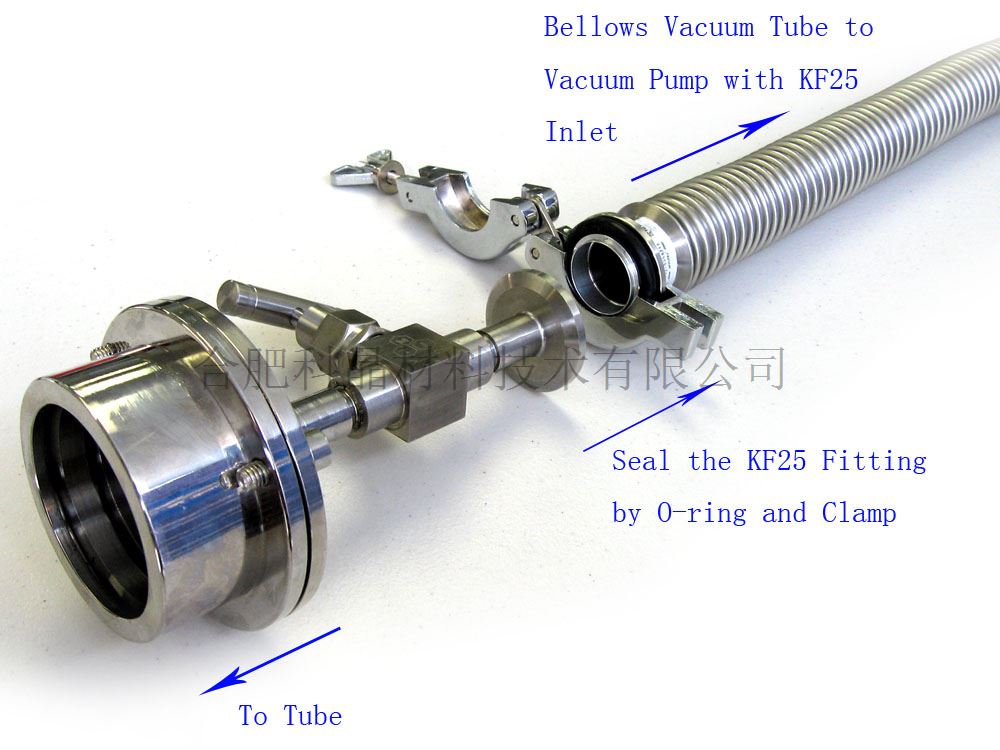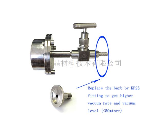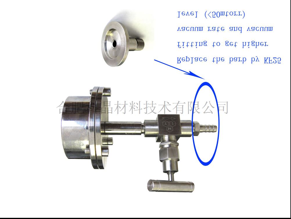- 此轉接頭可將1/4 BSPP(螺紋連接到本公司的法蘭)轉換為KF-25、KF-40或KF-50接口,再將KF-25、KF-40或KF-50不銹鋼真空軟管連接到泵上,以提高排氣效率以及達到更高的真空度< 50 mtorr。