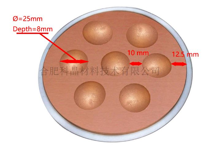 | 銅坩堝 | ·水冷銅盤帶有7個工位:直徑25mm×深度8mm(2ml) (圖1) ·客戶可定制水冷銅盤(需額外費(fèi)用)(圖2) ·熔煉量大的電弧爐SP-MSM-300,熔煉量≤300g (按Fe密度計) ·真空吸鑄功能電弧爐SP-MSM208 (圖3) 圖1 圖2 圖3 |
