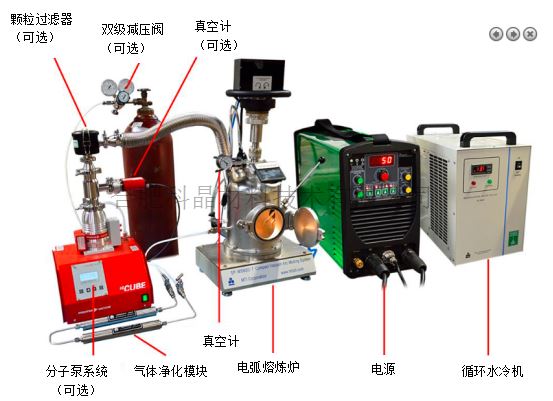 | 水冷機(jī)&氣體 | ·需要循環(huán)水冷機(jī)(標(biāo)配中不包含),對腔體,銅坩堝&模具,和電極水冷 ·可在本本公司購買循環(huán)水冷機(jī)KJ-5000 ·水冷管尺寸:外徑12mm×內(nèi)徑8mm ·熔煉樣品需要高純氬氣(純度≧5N)(設(shè)備中不包含) ·熔煉時可能需要5% H2 + 95% Ar防止樣品氧化 |